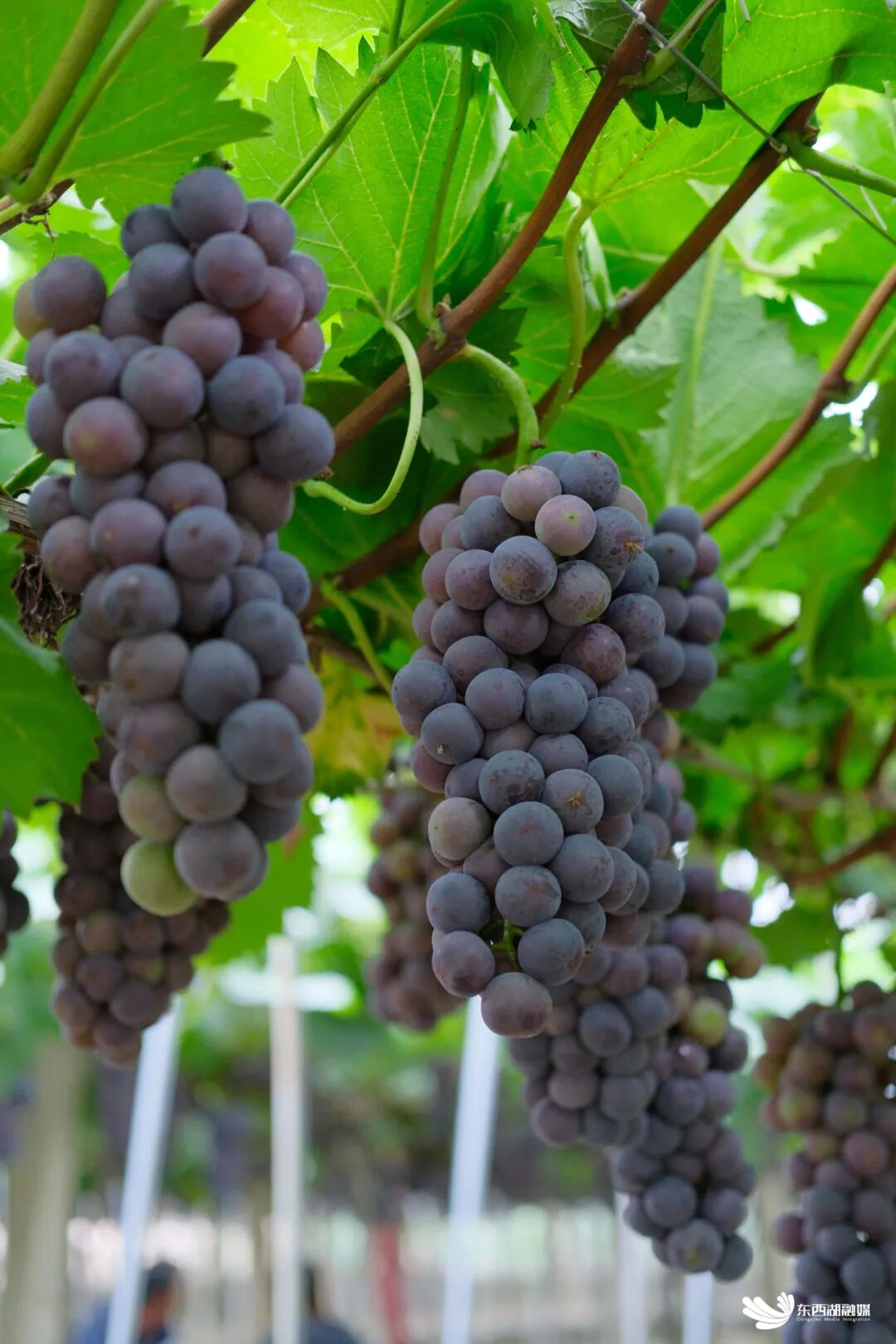 近日,葡桃乐葡萄种植园的夏黑葡萄和阳光玫瑰纷纷上市。记者走进葡萄大棚,一股热浪迎面扑来,“现在棚内温度接近40℃。”他一边观察葡萄的长势,一边剪下几串成熟的葡萄。