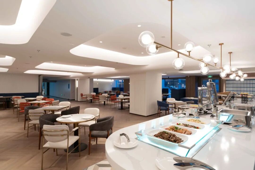 酒店公共空间配备24小时自助售货柜,方便宾客随时购买饮品、零食、生活必需品等。酒店提供中西式自助早餐,餐品可达近百种。“还有500平方米的会议室可满足大型会议需求,550平方米的宴会厅可承接25桌宴席。”