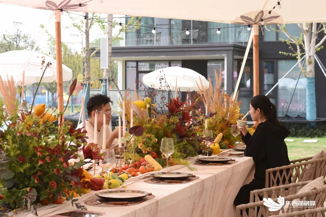 环形露天餐吧,可容纳50人同时围坐聚餐。当夜幕降临,满天星光与梦幻灯光交织在一起,为秋夜庆典增添神秘与暖意,带给新人、宾客的幸福感。
