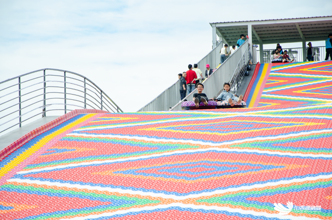 五彩大滑梯有着200米长的波浪状赛道,无论大朋友还是小朋友,从高处一滑而下,体验一把追风的快乐和风驰电掣般的快感,笑声和尖叫声在空中回荡。