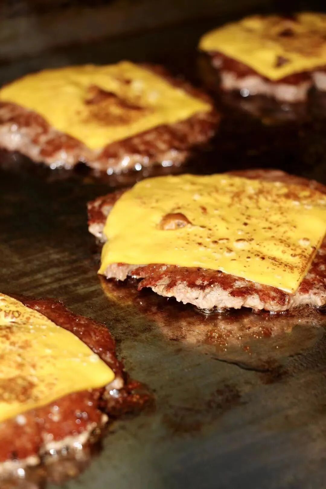走进这家充满美式风情的汉堡小店,虽然店面不大,却散发着浓厚的美食气息,随处都能看到店长忙碌的身影。只见他将厚实的肉饼在铁板上炙烤到滋滋冒油,再盖上整片的芝士,用喷火枪把芝士融化到刚刚好,加上酸黄瓜、生菜、番茄、多种酱汁一起搭配组合,最后插上一根固定的竹签便成为了经典的美式汉堡。