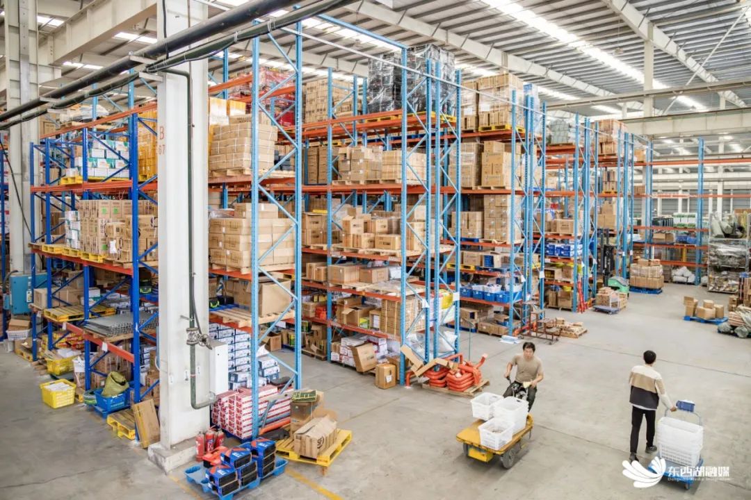走进园区,记者看到,发往各地的物流车辆络绎不绝,覆盖湖北省全域的物流网络已铺开,300条运输线路可进村下乡,送货上门,服务全省约20万户零售商。一期4万平方米仓储区已具备大型仓储超市形态,货架上琳琅满目,涵盖各类五金工具、机电设备、电气元件等约120万种商品,二期6万平方米仓储区即将启用。