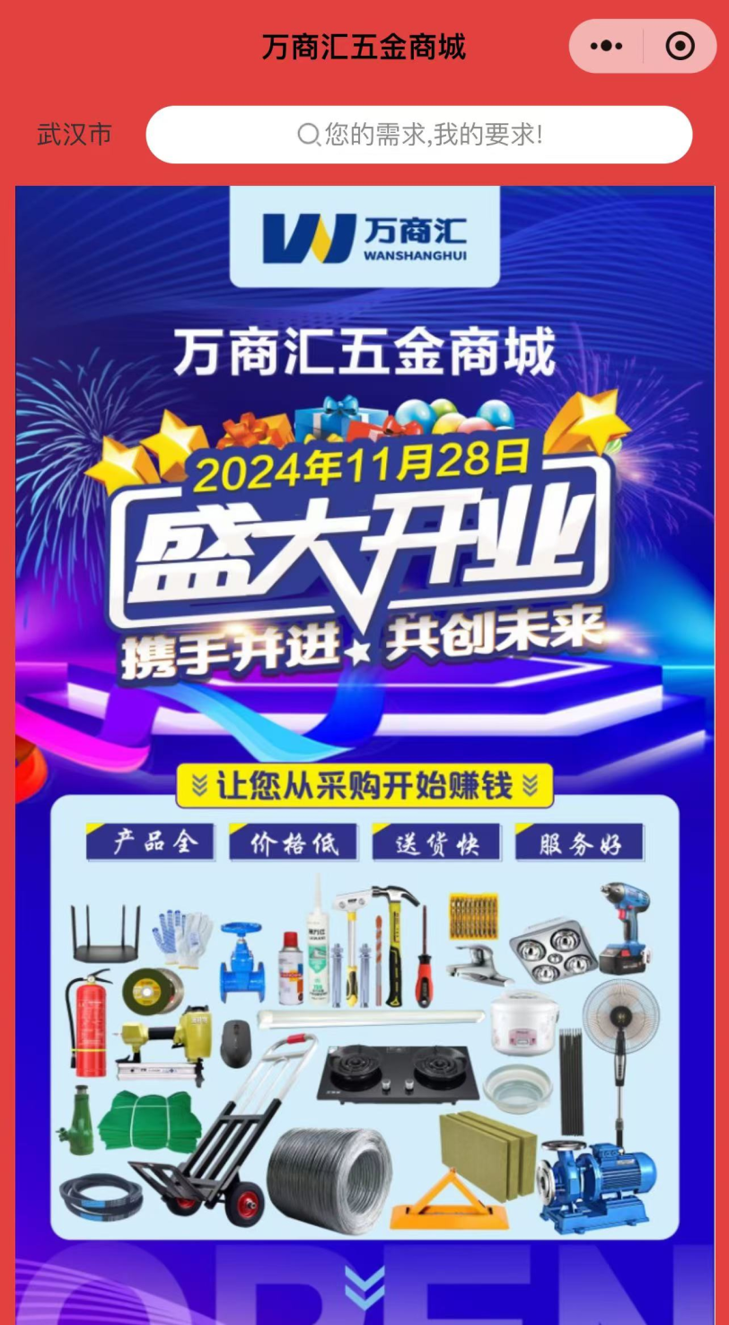 “以数字化驱动新质生产力,打造五金机电行业智能高效的采购销新生态。”万商汇集团董事长李军介绍,作为由湖北省五金机电商会发起成立的供应链创新型数字化平台公司,集团肩负着全省五金机电行业“二次创业”、全面转型升级再出发的责任使命,重磅打造的一站式线上五金商城将于11月28日盛大开业运行。