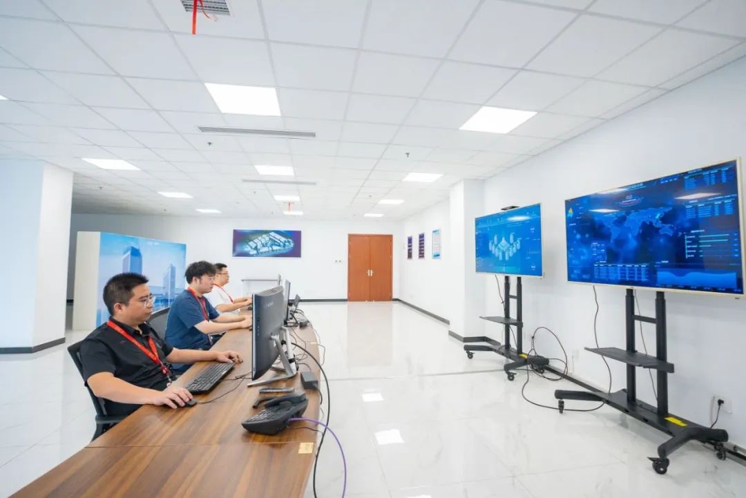 王俊华与部门同事一起对系统运行情况进行查看。