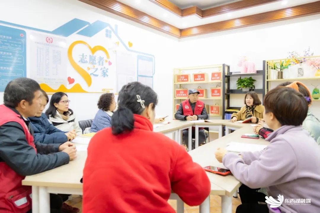 志愿者代表在社区新办公用房居民议事厅讨论开展清除小区牛皮癣行动。