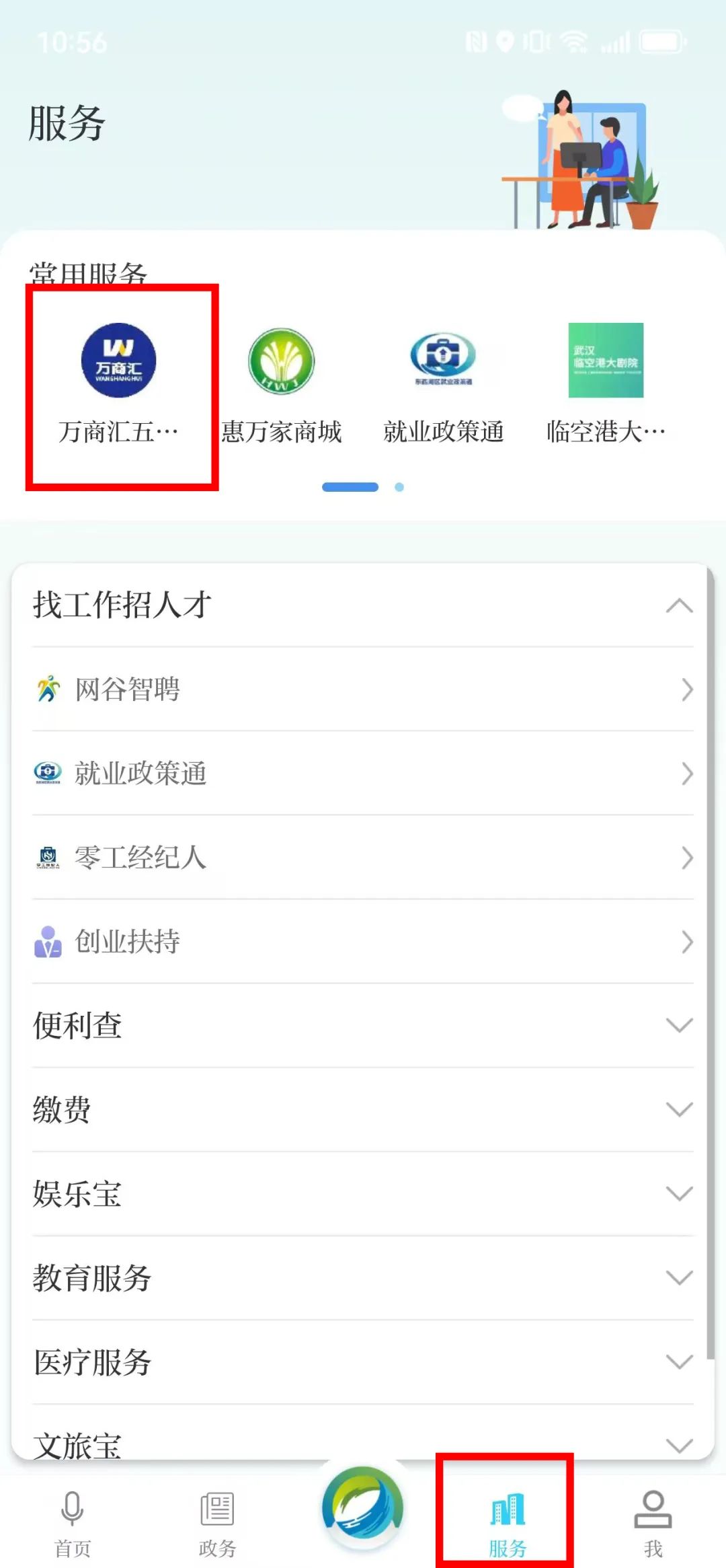 下载“云上临空港”客户端,进入“服务”板块,点击“万商汇五金商城”。