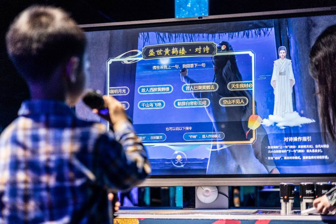 盛世黄鹤楼和小朋友对诗。(企业供图)