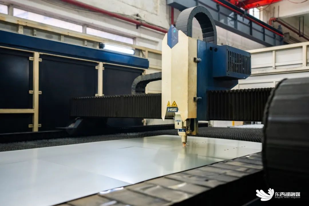 仓库正下方,是武汉科禄格的生产车间,工人们在各自岗位上,工作忙碌而有序。机械式冲床、镭射切割、焊接、冲床、无心研磨机等精密机械加工设备,将原材料一步步加工成风机零件,再组装成客户的定制产品。