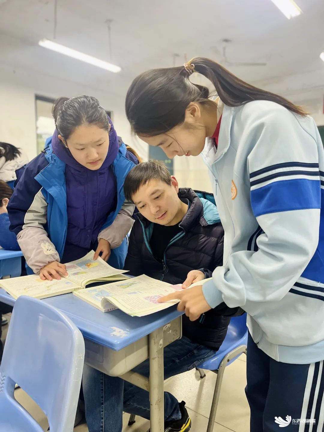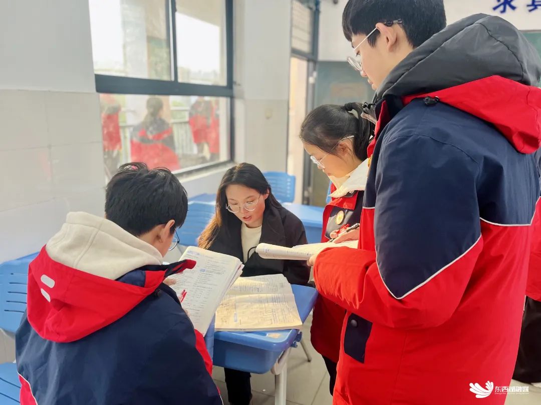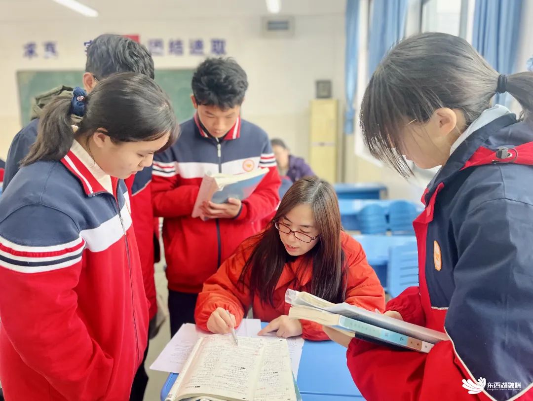 教室内,同学们围在课桌前,聚精会神地听着老师的讲解。高一(1)班杨扬同学是物理课代表,他表示,自己平时会把课程上不懂的知识点框出来,等到第五节课,就去找老师一一解答。在答疑过程中,老师不仅帮助解决问题,还特别注重培养逻辑思维,经常进行举一反三的训练,“让我受益匪浅。”