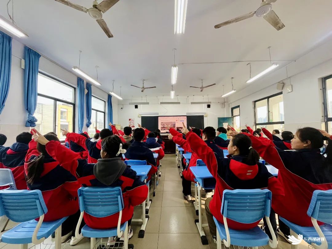走进高一(1)班,一股青春的气息扑面而来。学生们以课桌为依托,或挥臂、或击桌、或鼓掌,一系列连贯而富有节奏的动作整齐划一,仿佛整个教室都随着他们的节奏在舞动。