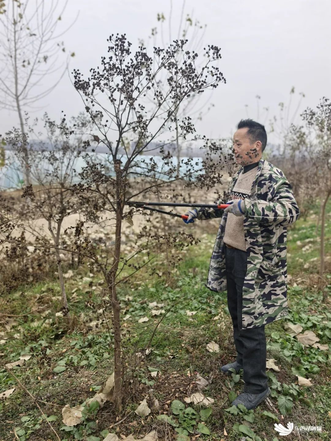 “随着气温逐步下降,树木进入冬季休眠期。我们要赶在春节之前把这些树枝修理完,春天就好长。”