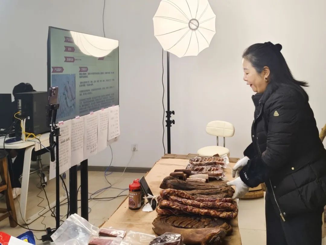 覃雨介绍,年关将近,香肠、腊肉等农特产品,在直播间成了炙手可热的香饽饽。
