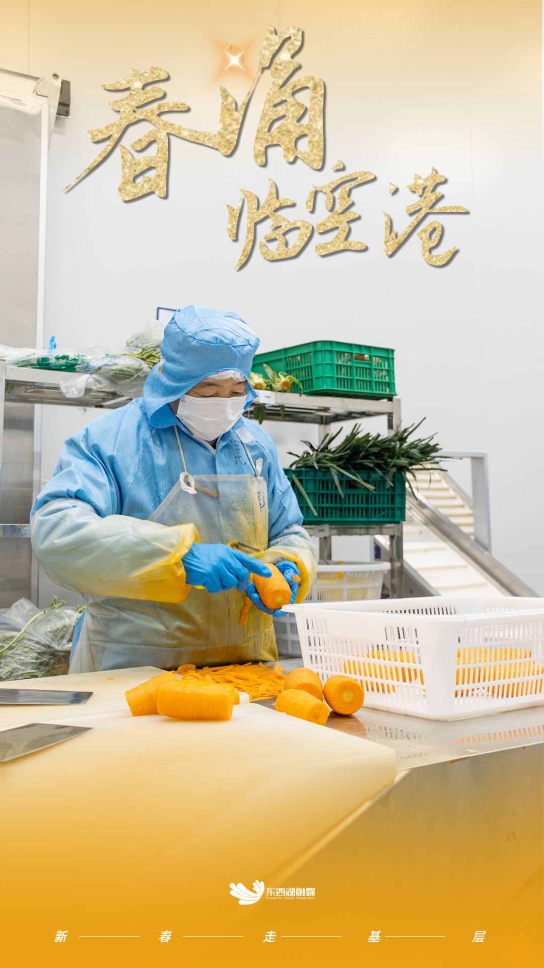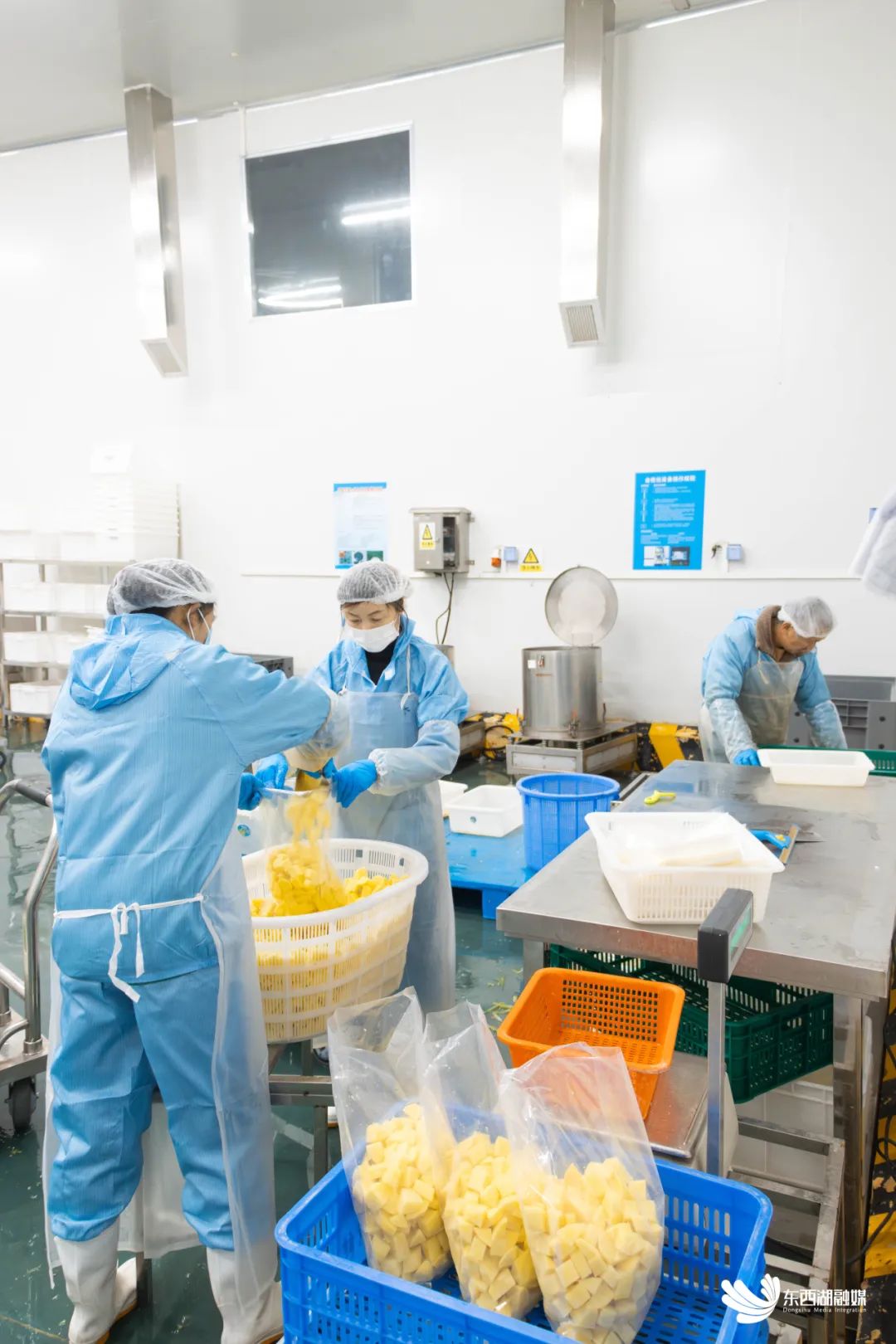 当天下午1点,在武汉汇春名优农产品专业合作社净菜车间,同样是一片忙碌景象,工作人员正在对土豆、莴苣、小米椒、小白菜、胡萝卜等蔬菜进行净菜加工,进场的蔬菜依次完成冲洗、削皮、清洗、切片等工序,随后通过抽真空的方式进行包装,接下来它们将通过冷链物流车送往市内的餐饮客户。
