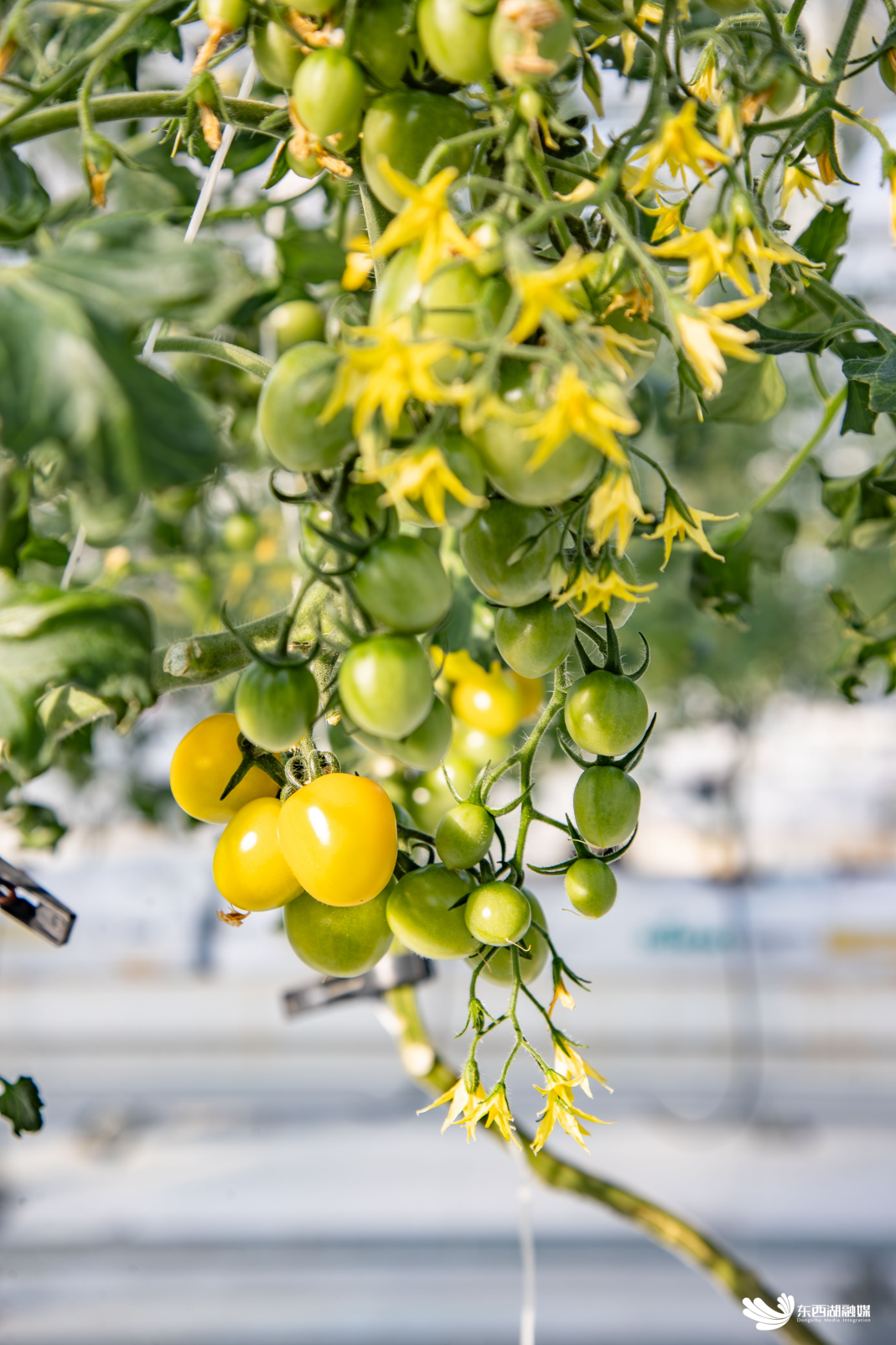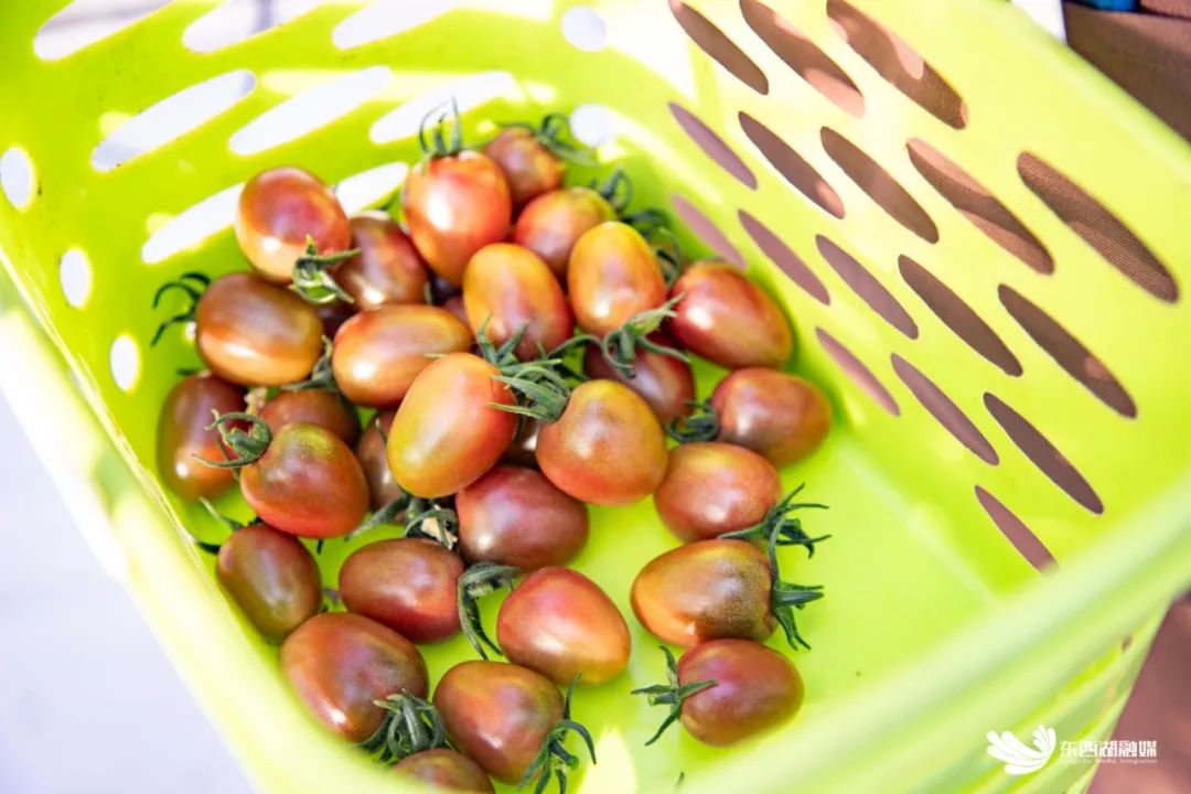 在番茄种植区,同样是一片生机勃勃景象,番茄苗上结满了果实,工作人员按照果实的成熟程度进行采摘,记者尝了一颗番茄,满口爆汁,十分香甜。工作人员龚春兰介绍,番茄现在刚刚上市,订单十分火爆,每天需要采摘、打包至下午5点。