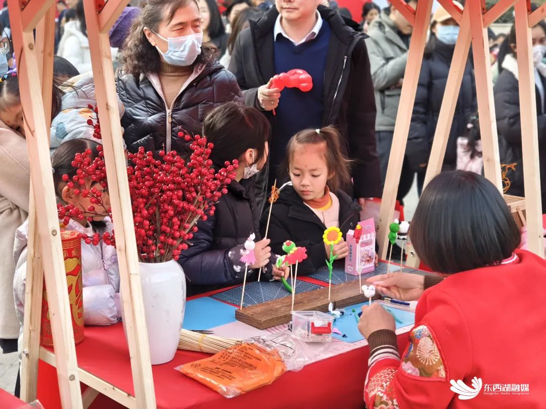 旁边,顶顶糕、面部彩绘、糖画等传统技艺展示区域,也是人气爆棚。孩子们围在糖画师傅身边,眼睛紧盯着师傅手中的勺子,看着晶莹的糖液在石板上神奇地变成各种栩栩如生的图案,拿到手后都舍不得吃。