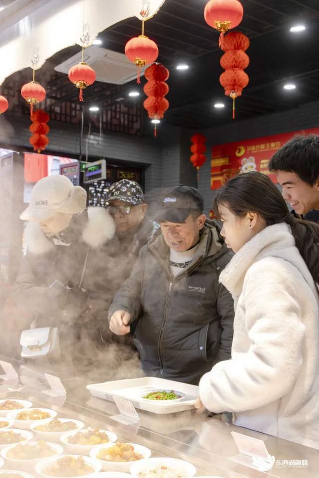 大年初一,四方游客涌来打卡时,长桌宴已备齐“央视春晚同款”武汉十大名菜:排骨藕汤、辣得跳、鱼头泡饭、黄陂三鲜、油焖小龙虾、清蒸武昌鱼、珍珠圆子、红烧甲鱼、腊肉炒洪山菜薹、新农牛肉。