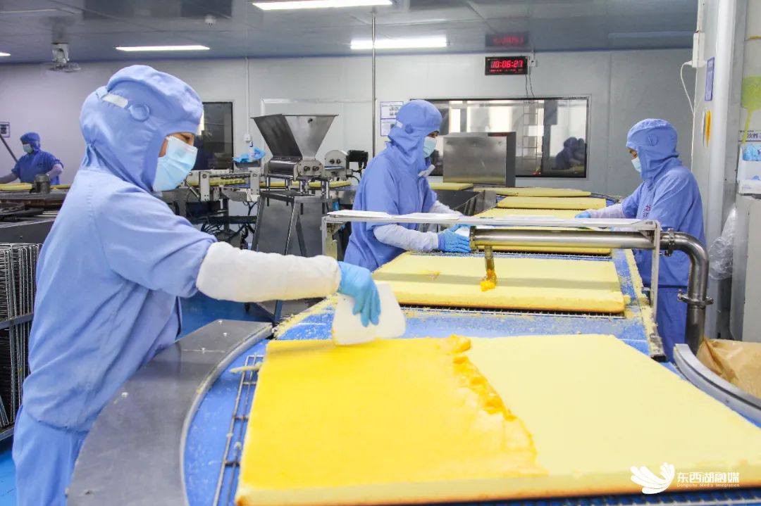 高效运转的芝士蛋糕生产线。
