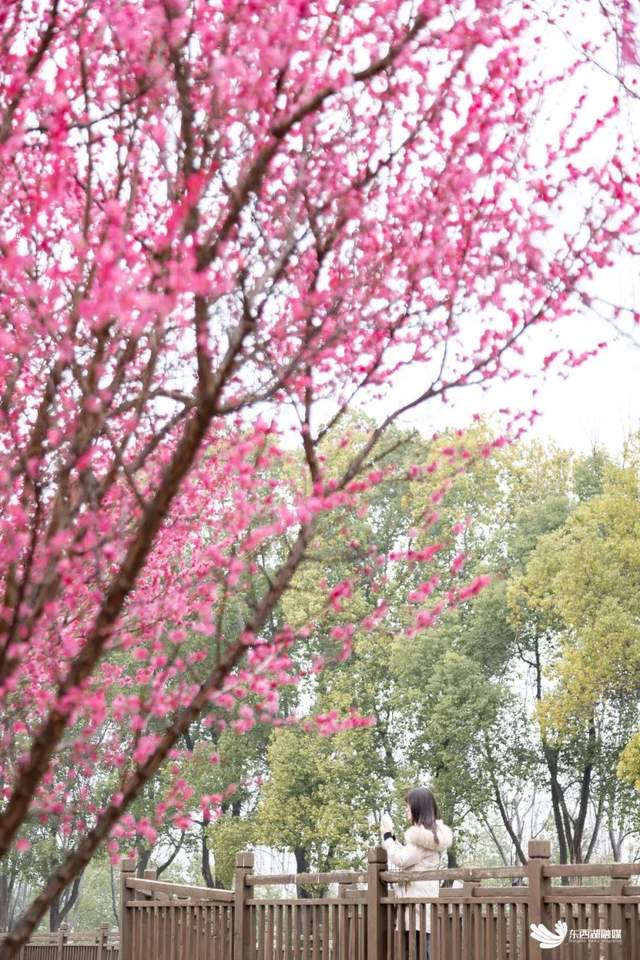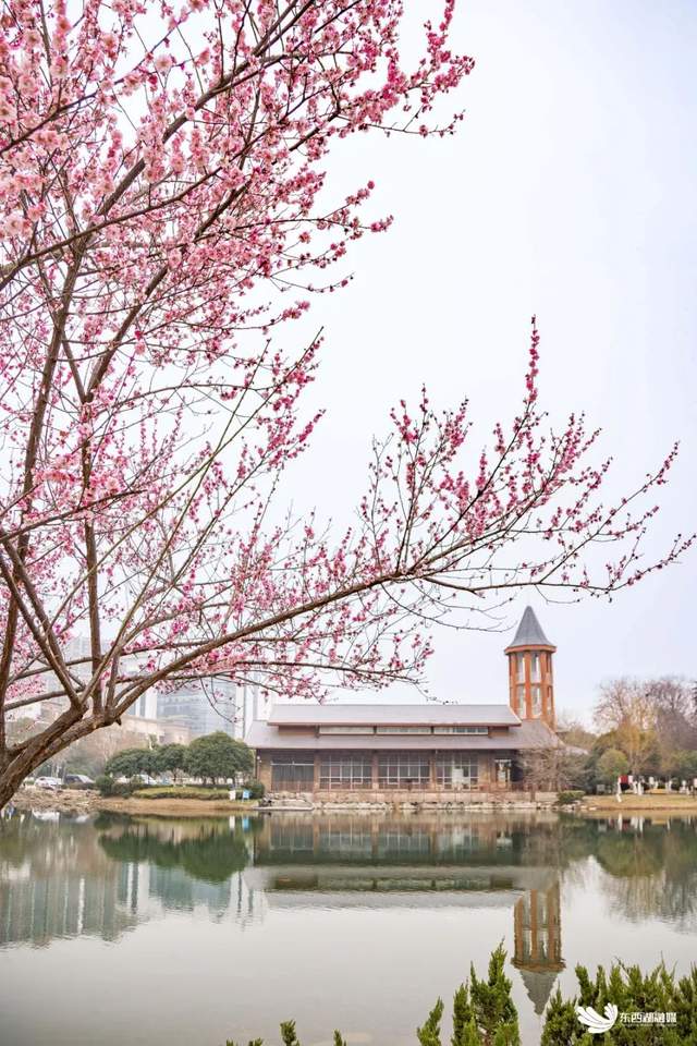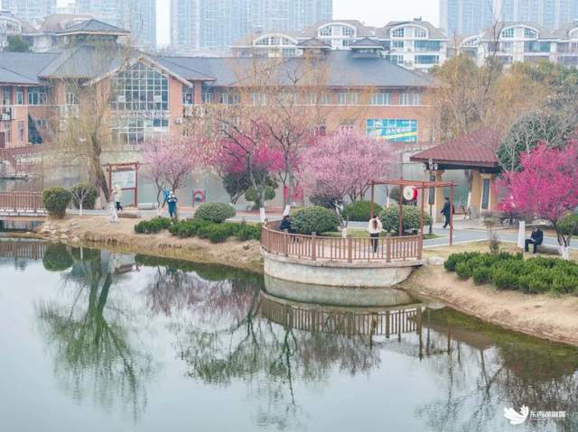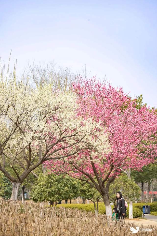 梅花主要分布在东门至武汉自然博物馆沿线,沿步道前行,梅树与园内的亭台楼阁、假山池沼相映成趣,移步换景,处处皆可入画。(入园需购票)