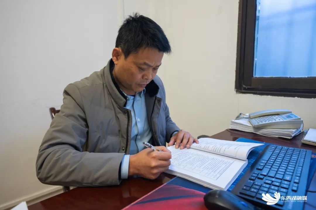 市生态环境局东西湖区分局工作人员对环评文件进行审核。