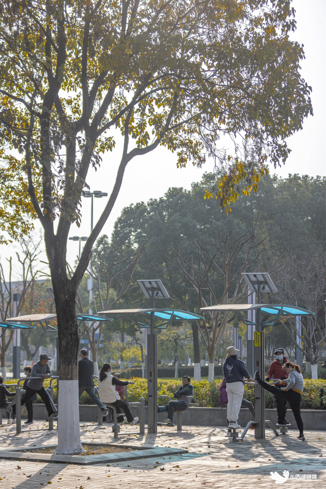 一年365天,每天早上,公园步道上随处可见锻炼身体的居民。公园里最吸引人的,当属多才多艺的退休老人,他们吹拉弹唱,自娱自乐。如果你也是文艺爱好者,不妨带上你的乐器,跟他们来一场“PK”赛。此外,随着五环广场升级改造,增添了太阳能健身器材,可实时显示运动量和消耗的卡路里。