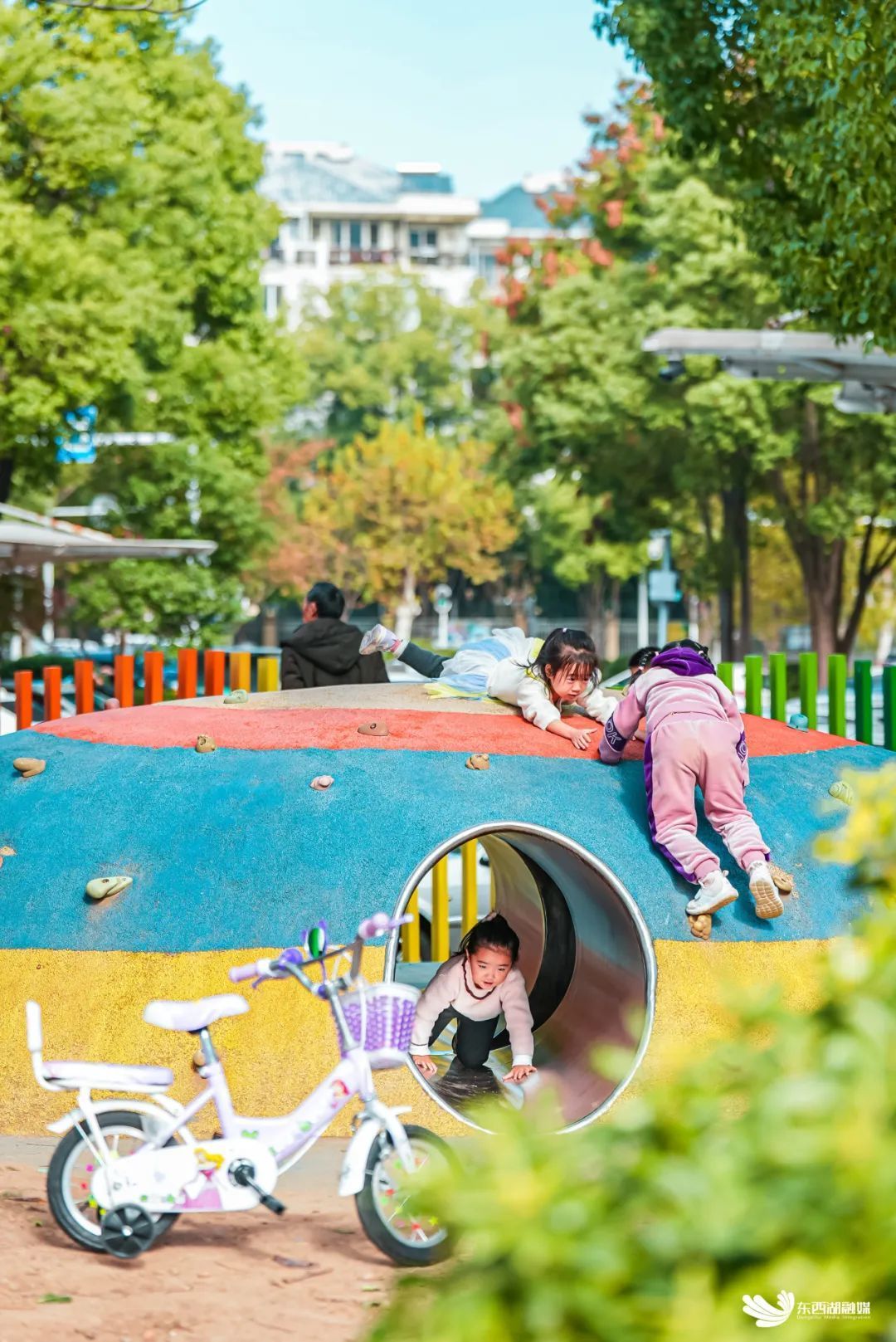 今天要给大家介绍的,并非是有海洋动物的武汉极地海洋公园,而是距离它1.3公里处的另一个「极地海洋公园」。这里与三环线一湖之隔,是东西湖区绿地开放共享点,不仅能欣赏白玉兰等花卉,天气晴朗时,与三五好友在湖边露营小聚,附近的大鱼乐园是孩子们心中的爆火游乐园,乐园里超大的蓝色大鲸鱼雕塑,拍照超级出片。