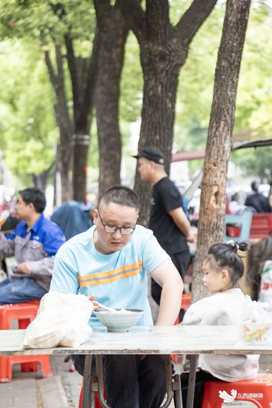 牛肉板面店、粥饼铺、蟹黄锅巴鸡是临近的店铺,老板都是从外地来走马岭做生意,现已在东西湖安居。商户们报团取暖,也会向顾客推荐其他店铺的美食,闲暇时坐在门口一起聊聊天。