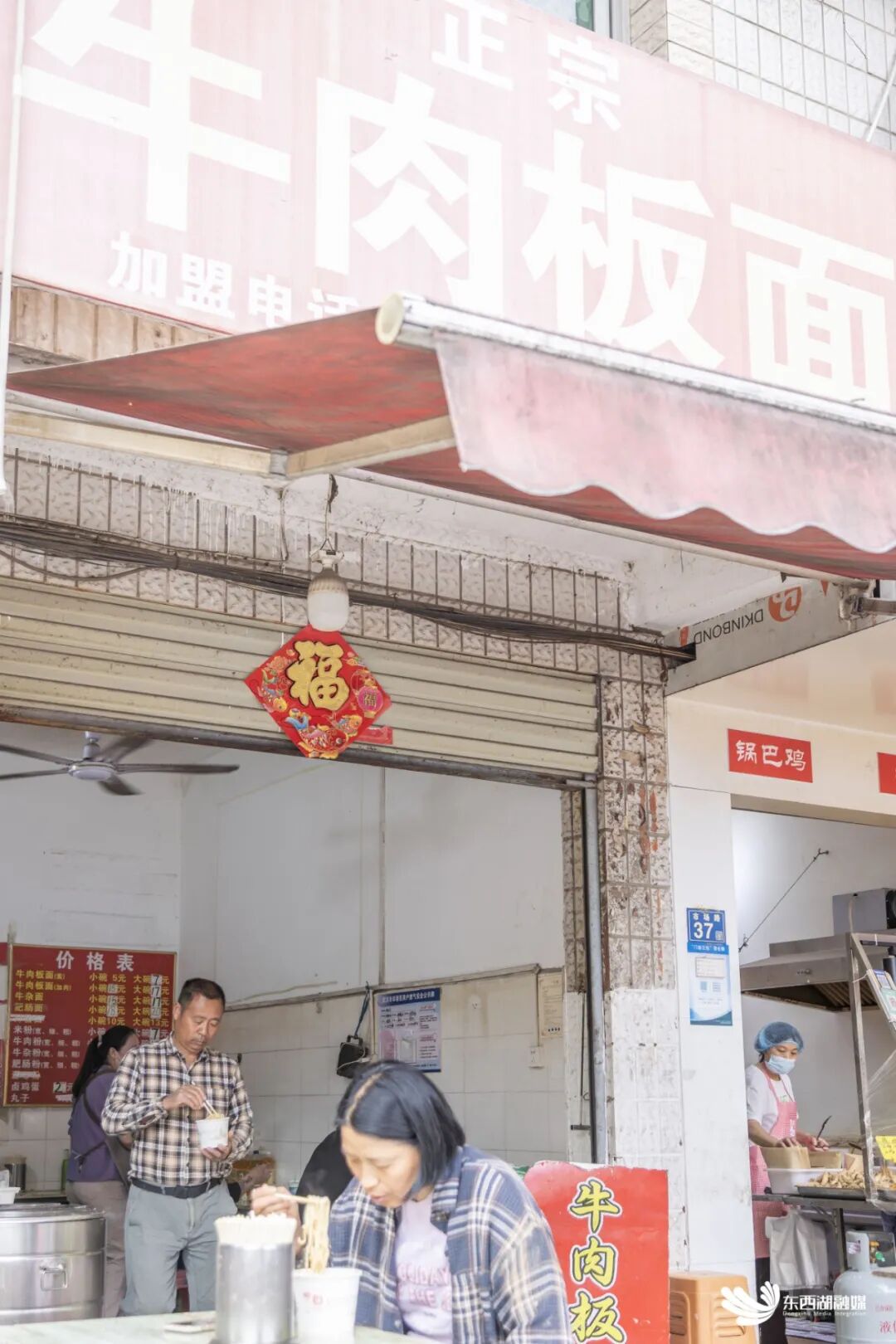 位于走马岭农贸综合市场的正宗牛肉板面店,店主张军其是河南商丘人,2017年来到走马岭。“之前随父母在北京做板面生意,自己小孩上学问题无法解决,了解到走马岭这边很多河南老乡做生意,就举家搬了过来。”