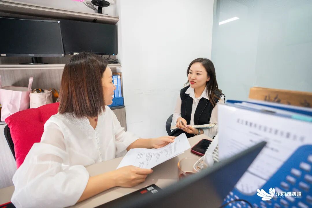 翼翱科技园工作人员正在与园内企业进行沟通交流。