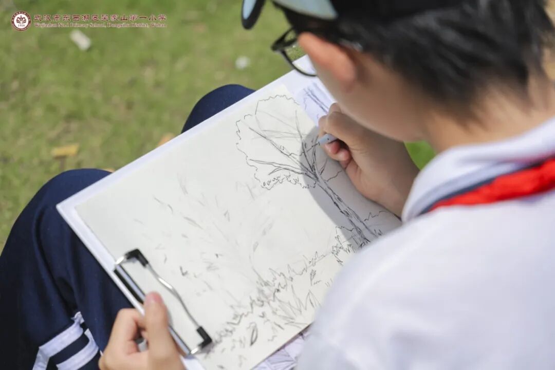 美育日,直接上演艺术嘉年华,行进鼓乐震撼全场。五年级师生走进码头潭文化遗址公园,手持画板凝神观察四周风景。“斗拱结构体现了古人的智慧。”美术老师现场讲解地域文化建筑特色。“我要把家乡的美寄给外地的朋友。”孩子们争先恐后地向老师展示画作。