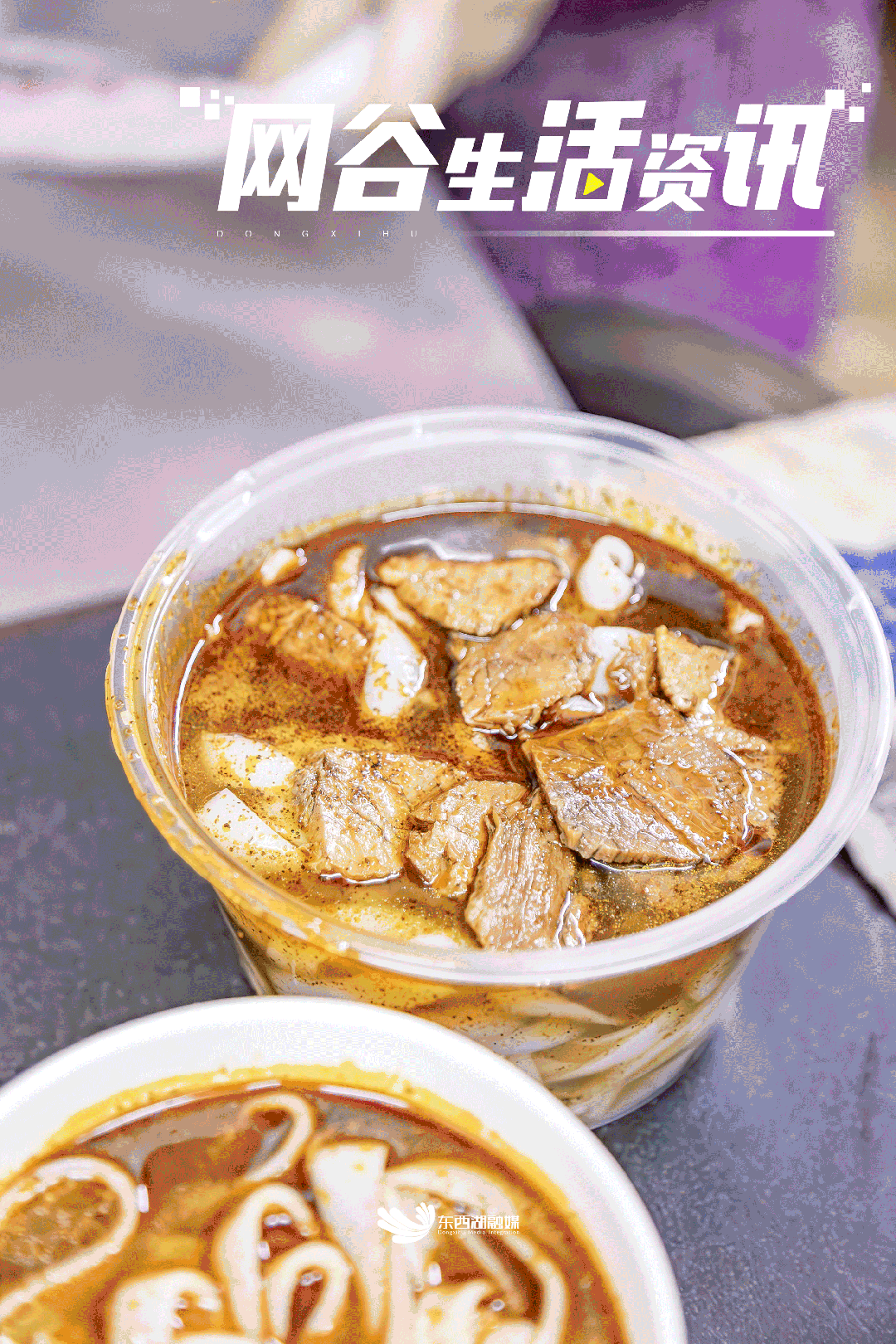 过早的街坊挑起一筷子宽粉,透亮的粉皮在灯光下能看见米粒的纹理。食客可根据喜好,单点牛肉、牛杂、肥肠等各类码子。