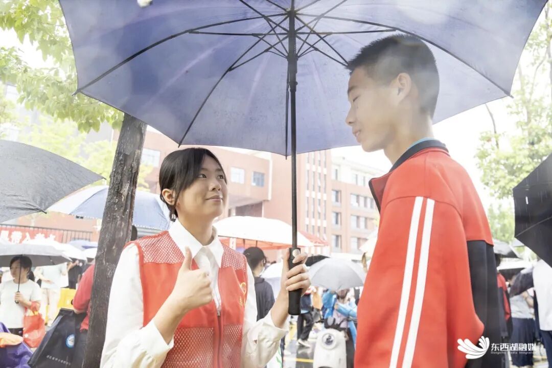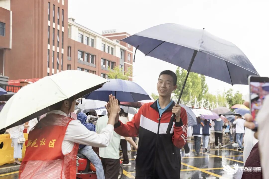 “加油!加油!”今天清晨8点,东西湖初级中学考场外,身穿红色志愿者马甲的杜伟热情地与前来参加中考的考生一一击掌,为他们鼓劲。这位刚结束2025年高考的女孩,此刻的身份不再是考生,而是暖心的护考志愿者。
