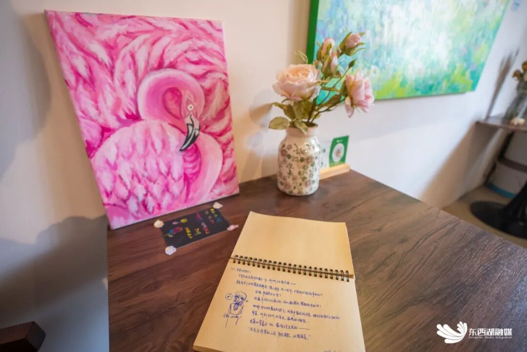 “花甜喜柿”店内不少顾客在留言本上留言交流。