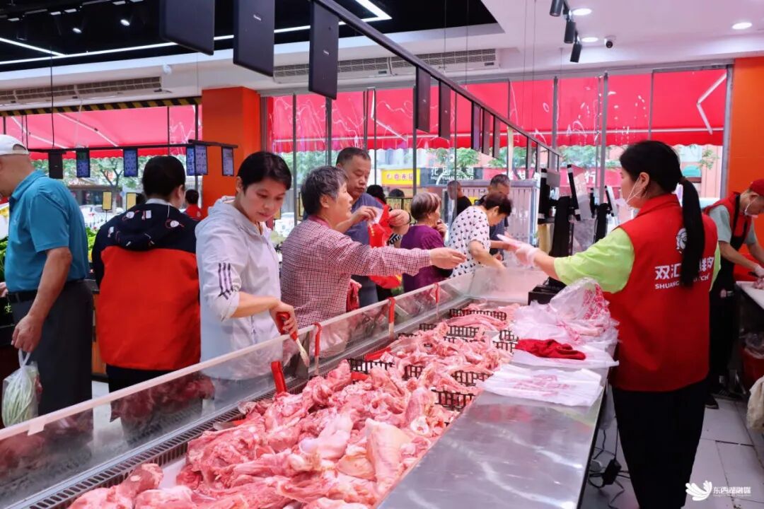 “这肉色泽红润、纹理分明,价格也比市场实惠。”正在选购后腿肉的王女士对产品赞不绝口。据店长张雪婷介绍,门店日均接待顾客约2000人次,日销售生猪肉1.5吨,鸡肉、牛肉500公斤。所有肉类产品均来自中国双汇肉类交易中心,实现当天屠宰当天送达。