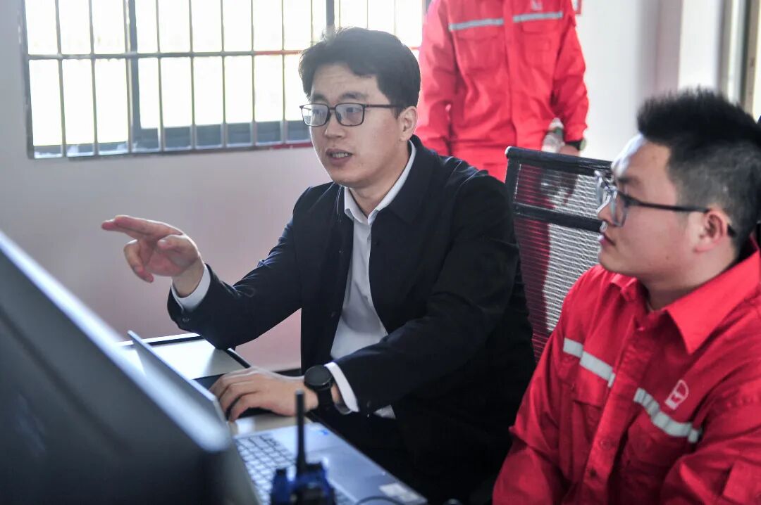 潘灵永(左)在加氢站现场指导。(企业供图)
