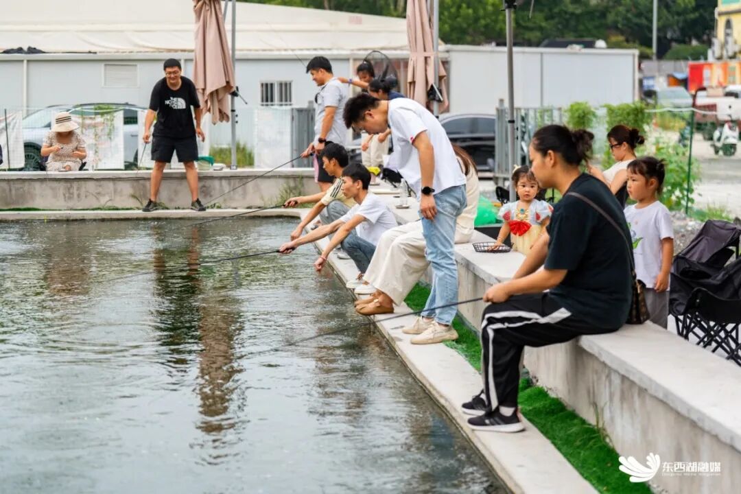 游客们手持钓竿,享受着钓虾的乐趣。