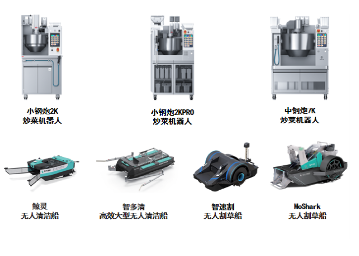 目前,公司业务正应用在智慧物业、智慧工厂、智慧家政等多个场景。在清洁领域,室外道路巡扫机器人、室内洗拖机器人、幕墙清洗机器人高效作业;在安防巡检领域,室外巡逻机器人、室内巡检机器人构筑安全防线;在家政和物业服务领域,炒菜机器人、智能垃圾箱大大解放人力投入。据悉,公司业务版图还将向数据机房智能巡检、水面清洁等新兴场景持续拓展。