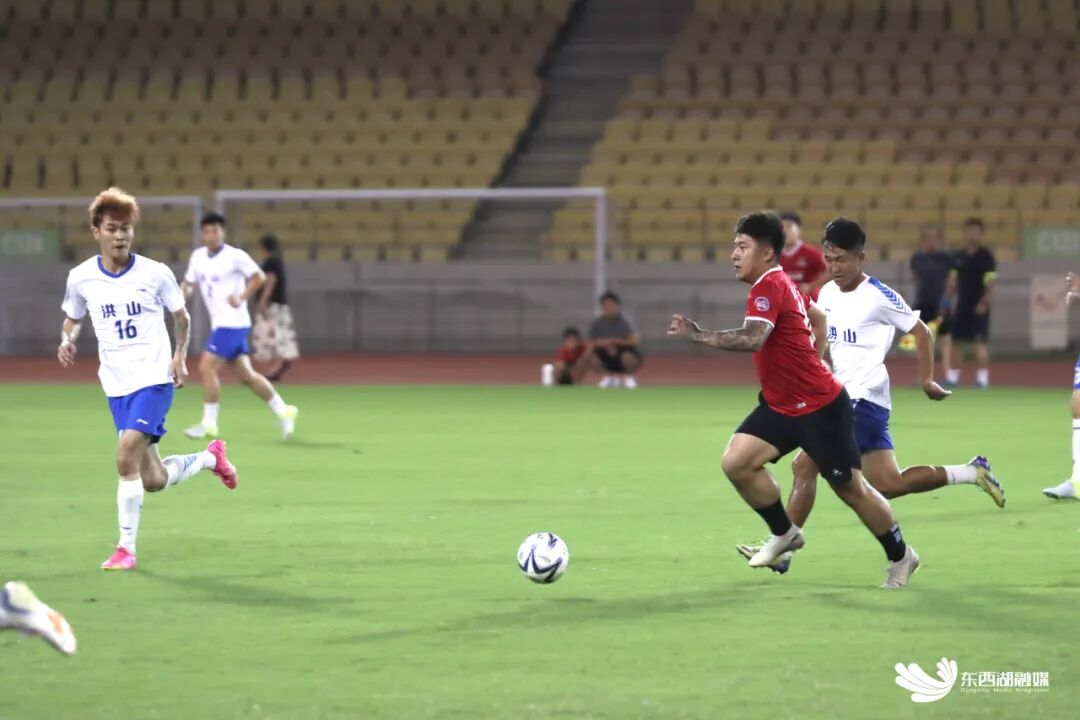 8月22日晚,东西湖区足球队与应邀前来的洪山区足球队,在武汉五环体育中心举行热身赛。这支由教师、民警、银行职员组成的草根球队,正通过“以赛代练”的形式,为“汉超”第二轮赛事备战。