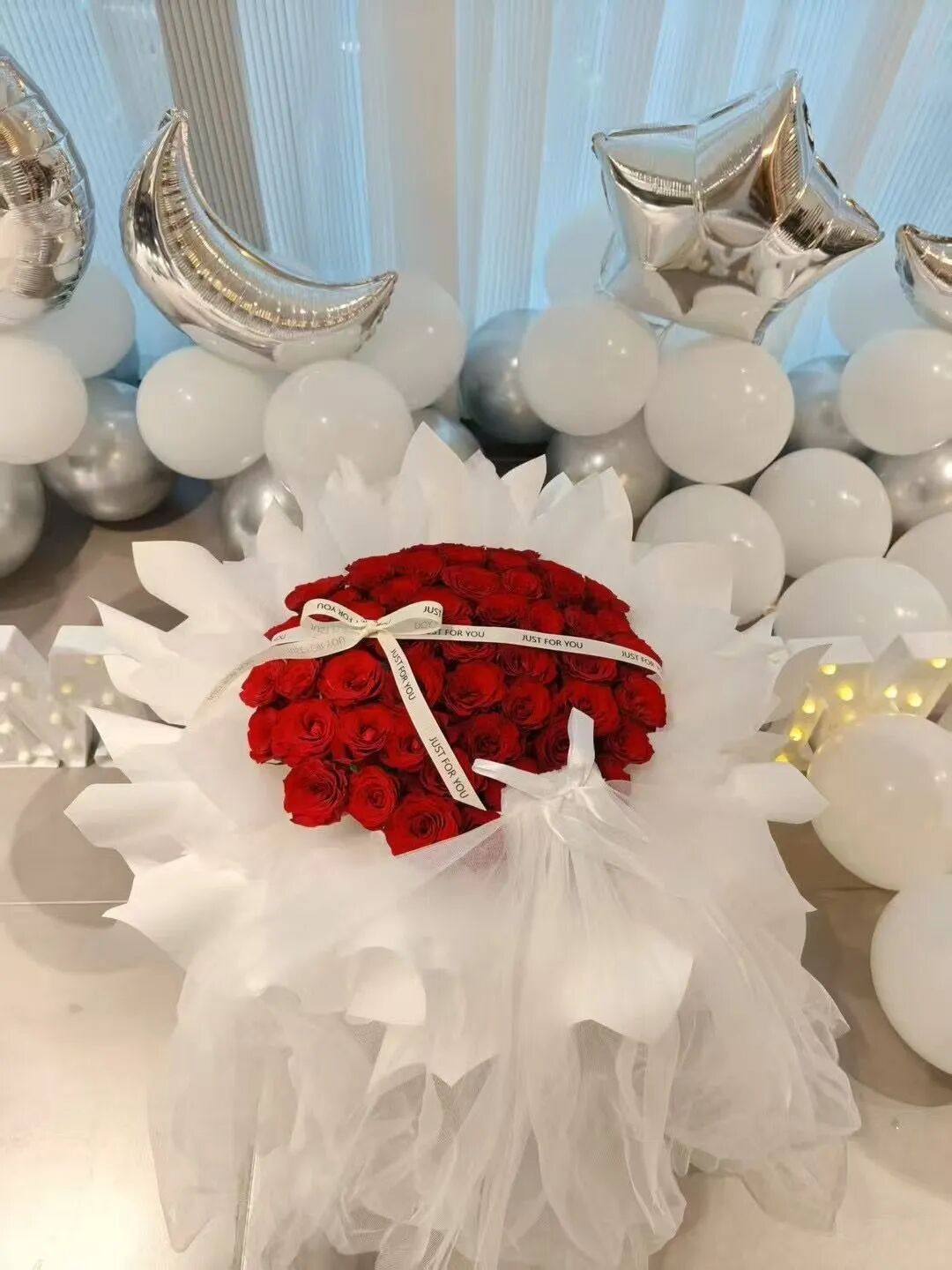 ○ 女生向男生求婚,需要一款大的花束放在场景正中间烘托情绪。