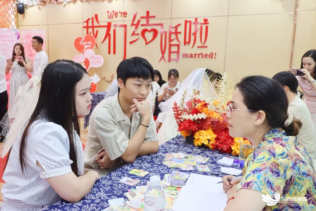除了常规登记,今年七夕,东西湖区婚姻登记处特意推出“浪漫七夕·幸福启程”主题新婚辅导活动。普法宣传、陋习破除、情感辅导、手工体验等多种形式同步进行,助力新人建立健康婚姻观念。