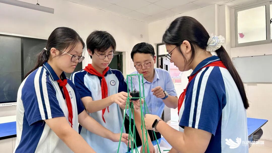 银奖小组邹柔嘉、李紫彤、葛天浩则对团队力量体会更深。复赛时结构不稳,时间紧迫。三人分头加固、调试、检验,在最后一刻完成作品。“工程不能单打独斗。信任伙伴,才能走得更远。”邹柔嘉说。
