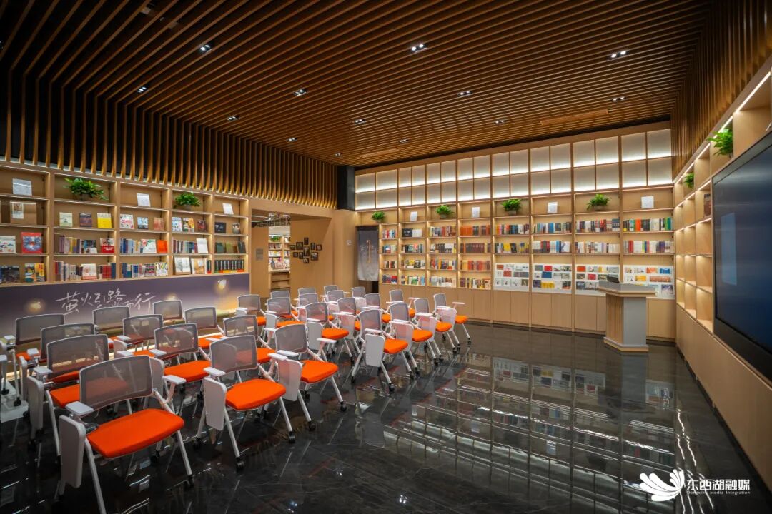 步入薄荷绿前厅,黄鹤楼彩绘墙与咖啡香共同营造出江城特有的文化氛围。随着动线深入,空间渐变为暖橙色,2万册精选图书与设计师文创作品构成“灵感生态圈”。最引人注目的是创造工坊内的3D打印区,读者可亲手将书中灵感转化为定制书签、模型等实体纪念品,实现“从纸上到掌心”的创意闭环。