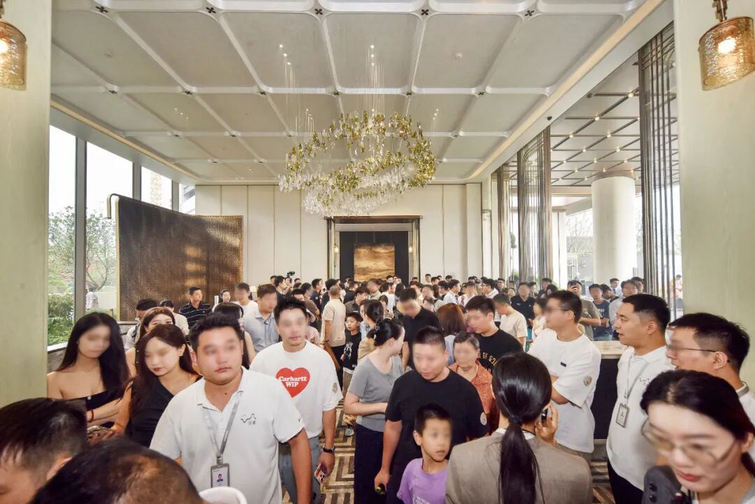 在联发·向湖售楼部,沙盘区聚集大量前来咨询的市民,销售员们手持激光笔,正分别向客户讲解不同楼栋的信息。销售经理张俊介绍:“开放当天,项目来访量极高,单日接待突破1500人次,圈存数量也已超过首开房源的套数。”