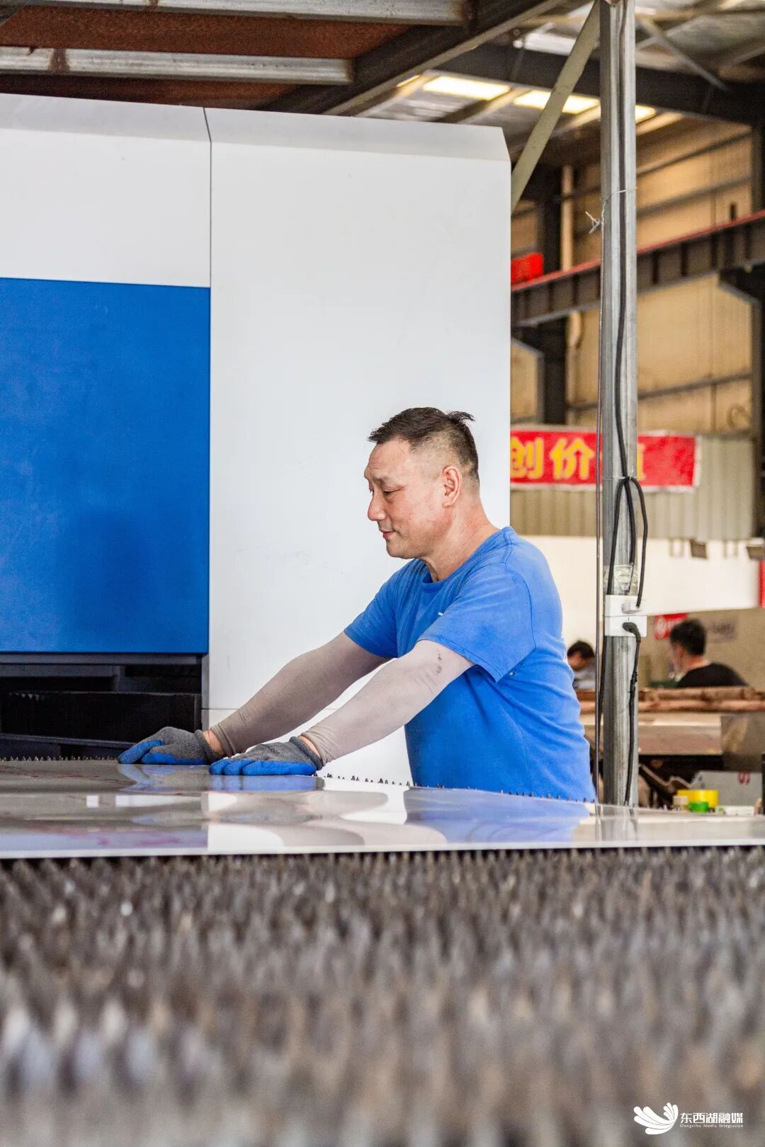 在新城十五路和东吴大道交会口,一座占地2700平方米的厂房里,机器轰鸣,钢板穿梭。工人们熟练地操作着激光切割机、数控折弯机和开平生产线,正在为新项目加紧备料。