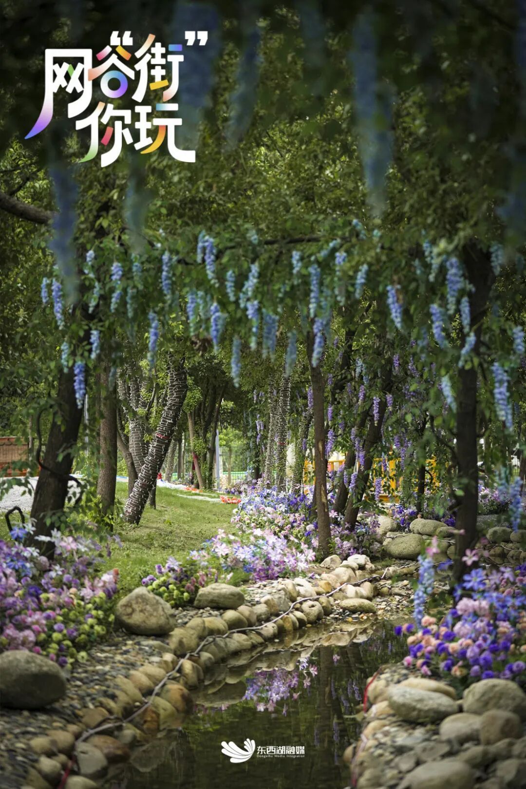 一旁的“叮咚冒险溪谷”雾气缭绕、紫花环绕,小桥流水搭配雾森系统,宛如踏入爱丽丝的仙境——让人拍照停不下来。