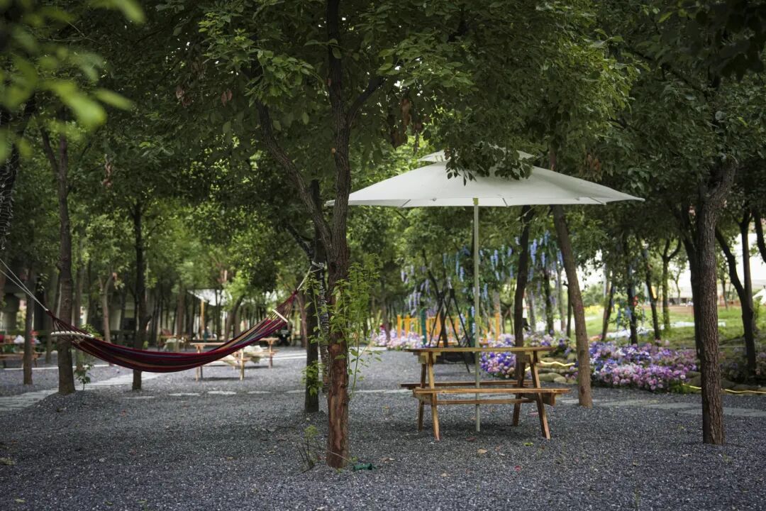 园区特地将烧烤区设于开阔的草坪上,让烟火气融入自然之中。家人朋友围炉而坐,肉串在火上滋滋作响,谈笑声随炊烟袅袅升起。孩子们在草地上追逐发光的气球,远处有人弹起吉他。