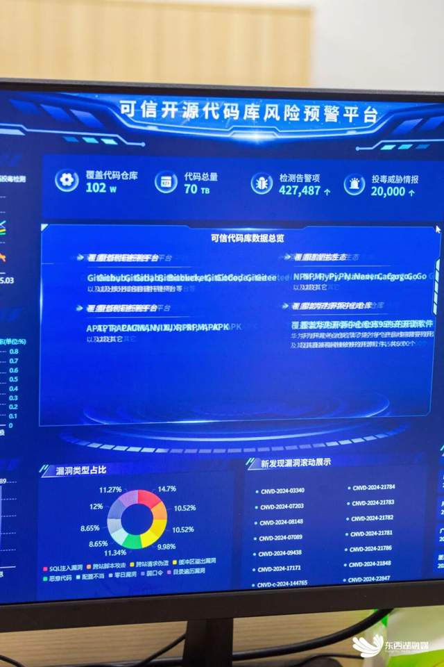 平台架构师骆训召介绍,可信开源代码库还会和国内最大的漏洞库联动,自动生成风险清单,帮助用户精准找到有漏洞的组件,“开源代码‘预警站’平台已集成21个行业投毒威胁库,基本全覆盖通信、金融、能源等社会生产服务主导行业,积累超4万条多语言恶意代码样本与攻击特征,这些病毒被‘画像’后,一旦露面就会被迅速‘通缉’。”