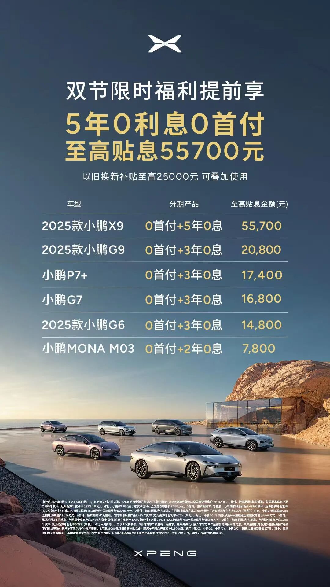✔小鹏G9:享5000元优惠或两年免息,二选一。