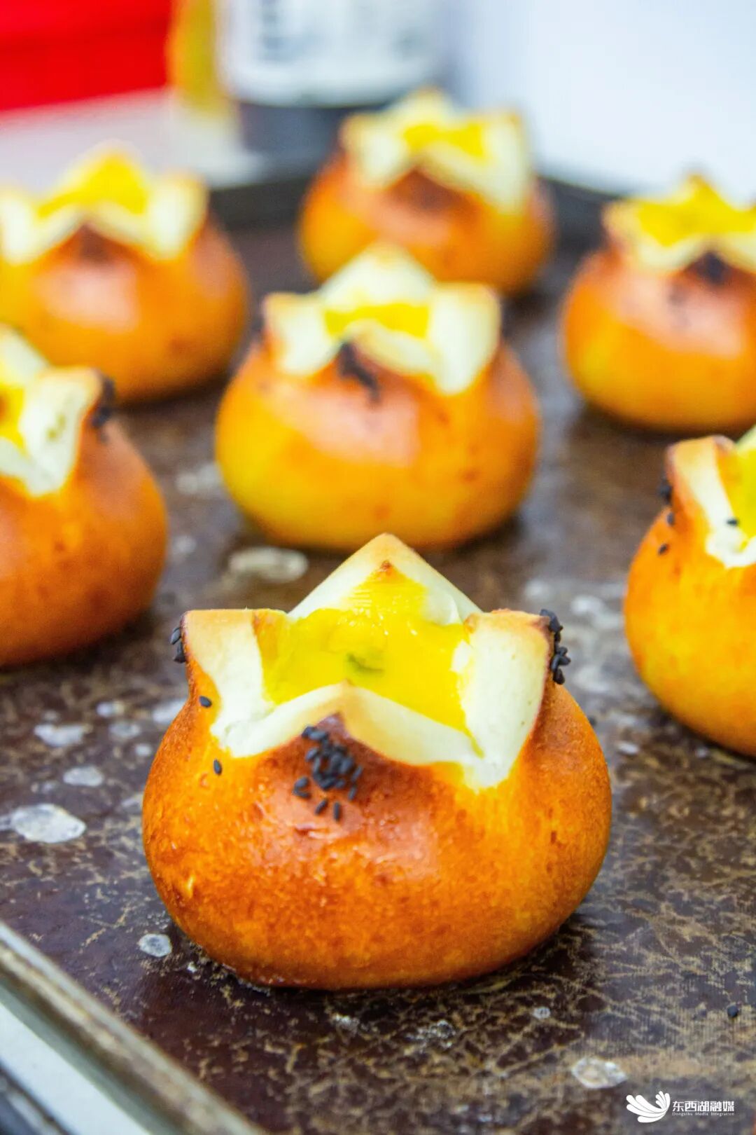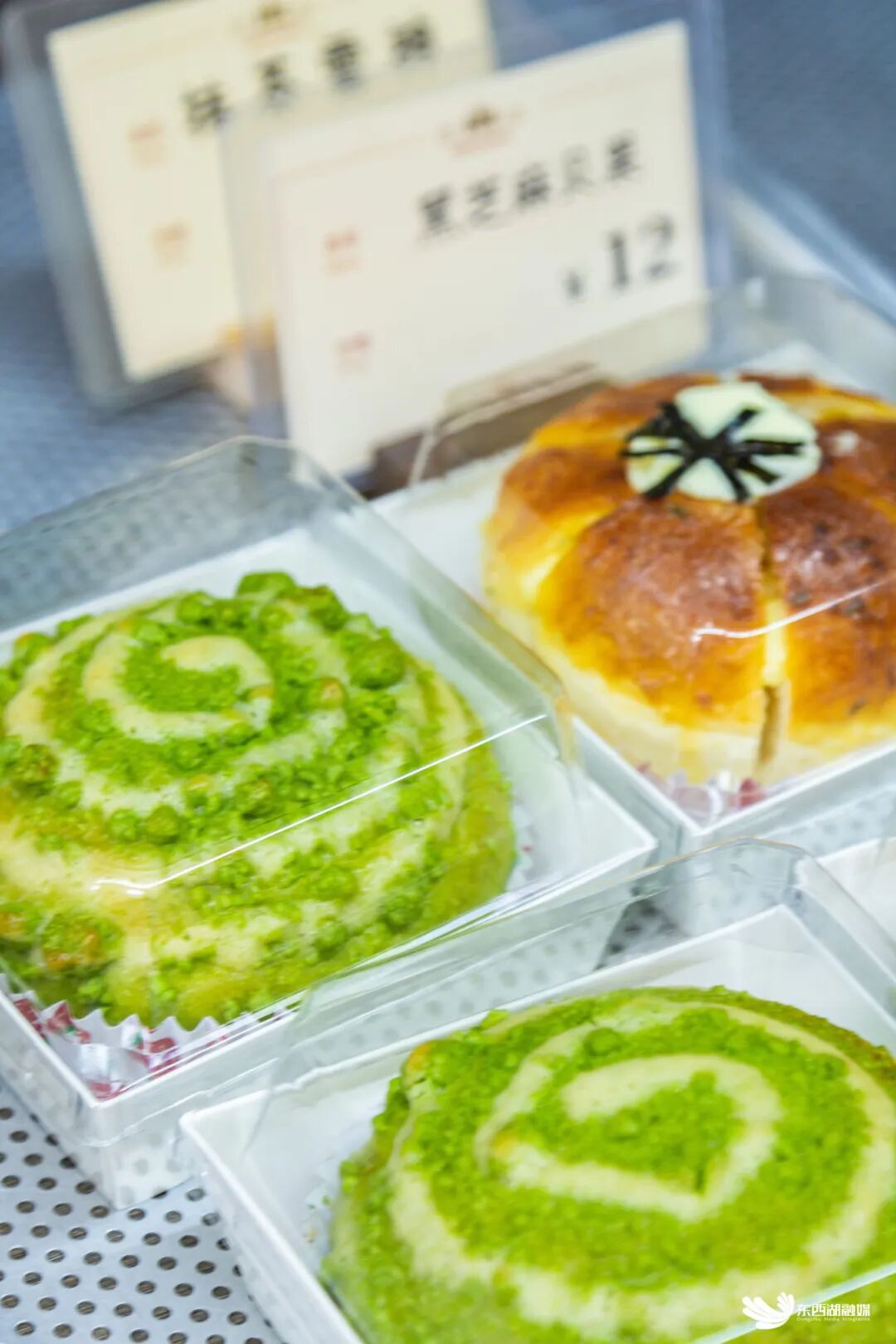日式牛乳小饼软乎乎的,十分可口;米面包系列是低糖低油的,特别适合小朋友;榴莲岩烧乳酪包,一口下去满是榴莲香;碱水面包更很有新意,自创了贡菜脆肠、黑芝麻奶酥、麻辣鸡丝三种口味,在别的面包店是买不到的。