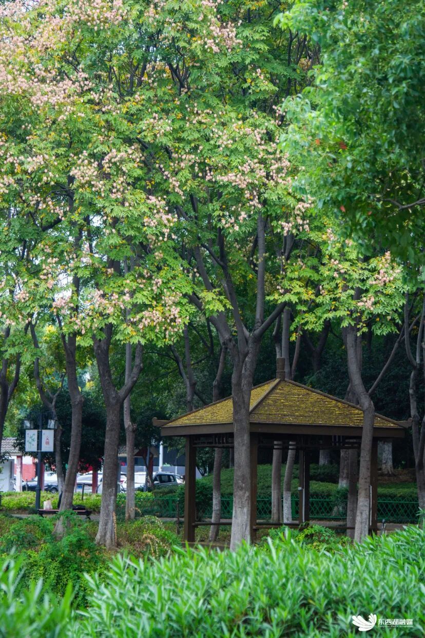 累了就到观光亭里歇歇脚,观湖光潋滟、鱼翔浅底,风里混着草木与湖水的清新。沿环湖绿道散散步,左手是金银湖的波光,右手是水杉林的绿荫,骑行者的笑声与鸟鸣交织成秋日乐章。