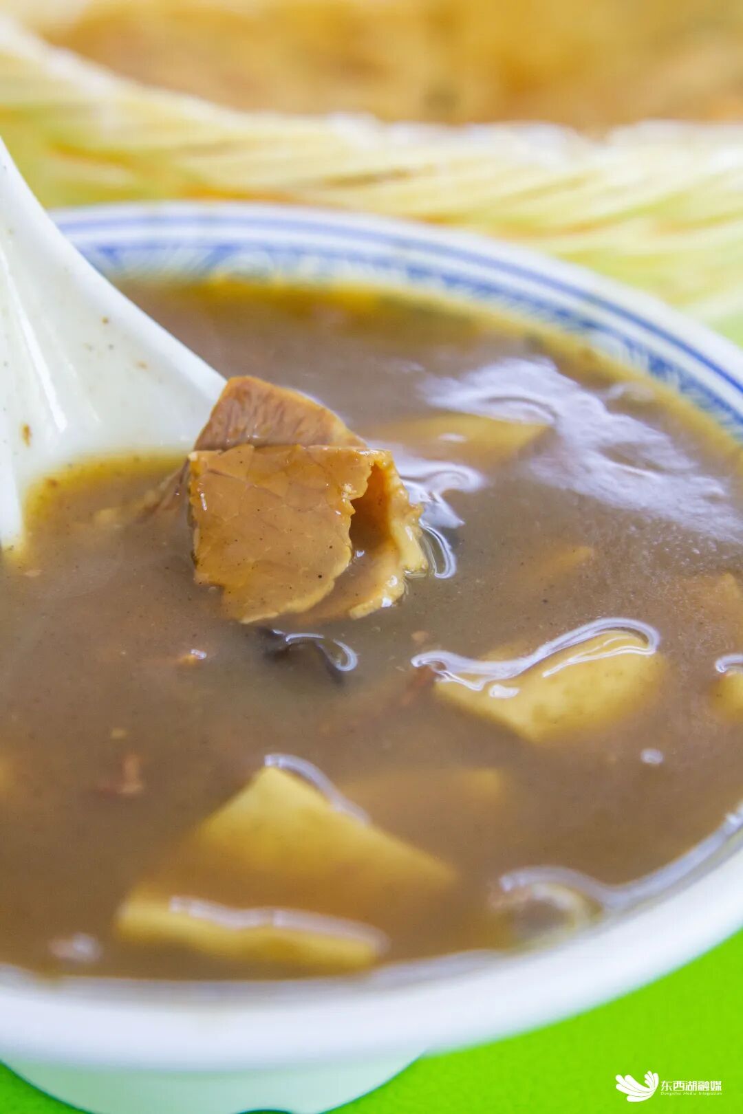 早上8点 ,天气微凉,想吃点热乎的,就冲“王忠圈胡辣汤”,瓷碗里的汤浓稠发亮,大片牛肉藏在木耳、豆干、粉条、花生之间,是肉眼可见的实在。胡椒味不算浓烈,但牛骨吊出的汤底透着鲜,再配几个牛肉粉条水煎包,外皮酥得掉渣,性价比超高。一口汤一口包子,浑身都暖起来。